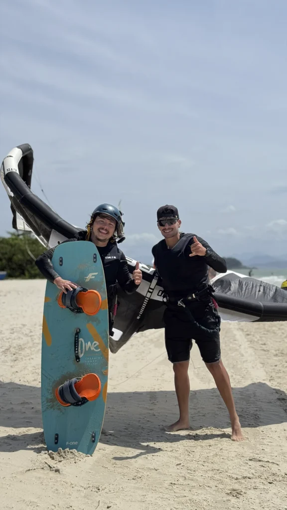 Apaixonados pelo kitesurf e pela energia de ver cada vez mais gente na água. O que começou como curiosidade virou paixão — e depois profissão.